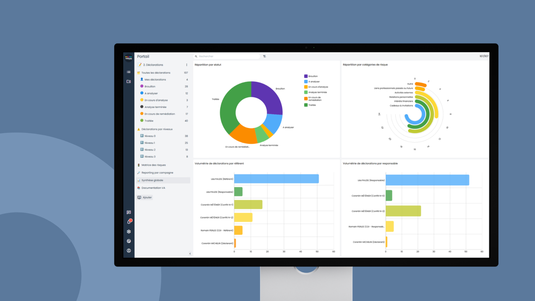 Today, data is everywhere. It informs decisions. It guides choices. However, it must be understandable and actionable. Coming from the world of Business Intelligence, Values Associates knows how data processing and visual presentation are key to the performance of companies, local authorities, and administrations. This is why all our no-code software integrates data visualization. At a glance, interactive and dynamic formatting gives meaning and value to your data and provides you with the keys to take action.