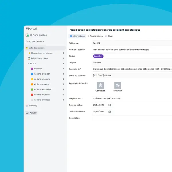 Our software allows for documenting each audit by associating specific risks identified in the corruption risk mapping. It helps demonstrate compliance by providing formal evidence to the French Anti-Corruption Agency (AFA) that risks are effectively managed. Monitoring the implementation of recommendations is simplified, ensuring that corrective actions are executed and their effectiveness evaluated.