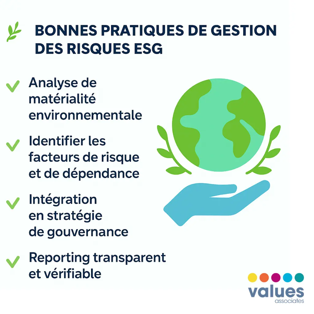 Several frameworks guide organizations in managing environmental risks and integrating them into ESG governance: